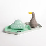 The Cloud Alarm Clock has a built-in 900mAh polymer lithium battery that can be charged. It can be powered by an external computer or adapter (within DC5V).